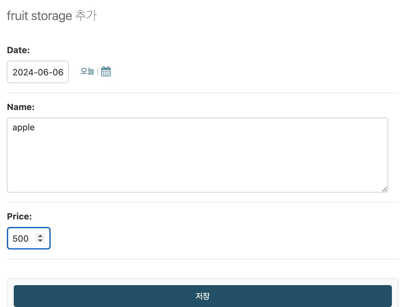 이제 등록이 되었습니다. 이제 Fruit storages라고 우리가 만든 table이 보입니다. +추가를 눌러서 항목을 추가합니다.