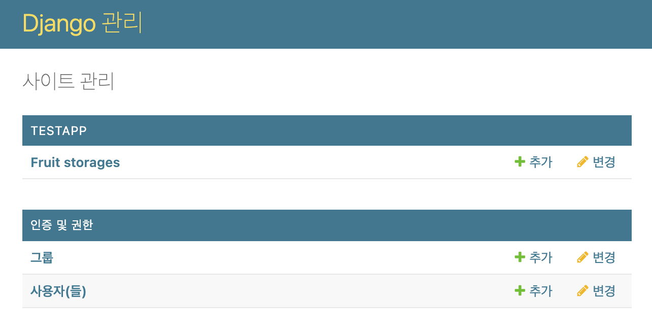 하지만 당연하게도 table에는 항목이 하나도 들어있지 않기에 아무런 항목도 표시되지 않습니다. 이제 table에 항목을 추가해 보겠습니다. 웹페이지를 만들고 코드를 통해 추가할 수 있게 해도 좋지만 django에서는 간단한 경우 table을 관리할 수 있는 관리자 페이지를 제공합니다. 이것을 통해 테이블을 관리하고 싶다면 testapp/admin.py을 다음과 같이 수정해 줍니다.