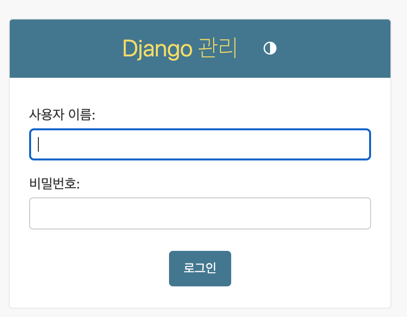 이러면 관리자 페이지에서 해당 모델(Table)을 관리할 수 있게 됩니다. 지금까지 한번도 들어가보지 못했지만 http://localhost:8000/admin으로 접속하면 다음과 같이 로그인 페이지가 뜹니다.