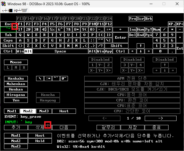 저는 이것을 해결하기 위핸 오른쪽 Alt키를 다른 키로 매핑하는 방법을 취했습니다. DOSBox-X의 상단 메뉴에서 기본-> 매퍼 편집기로 들어갑니다.