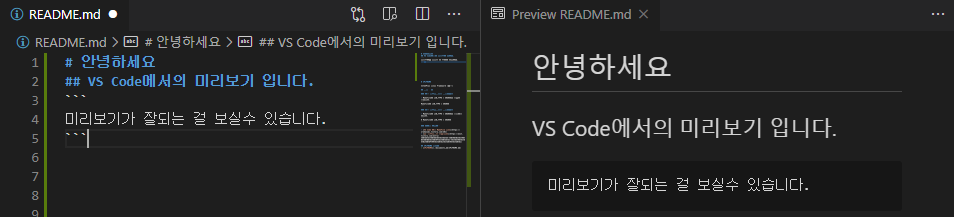 만약 VS Code를 사용하고 계신다면 해당 툴에서는 기본적으로 MD 파일 미리보기를 지원합니다.