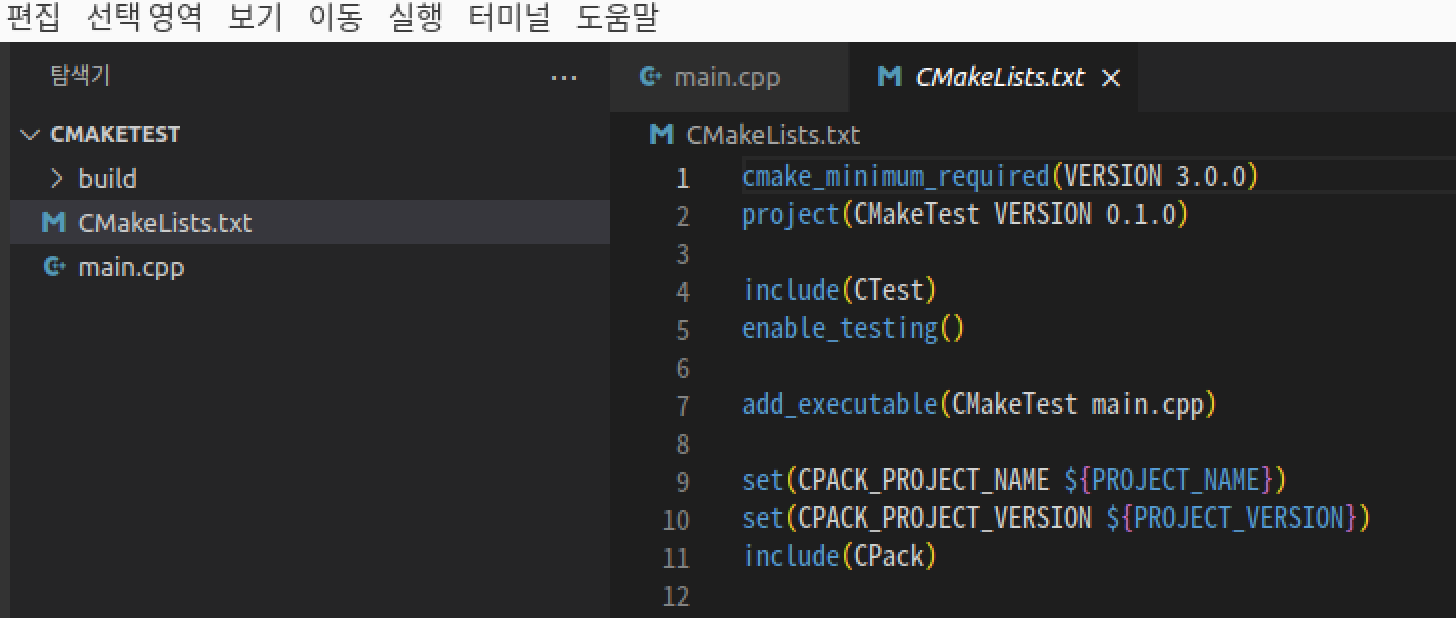 이제 다음과 같이 CMake를 위한 CMakeLists.txt가 추가되어 폴더에 추가되었습니다.